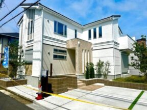 - 4LDK1号棟:104.34㎡(約31.56坪)、2号棟:107.64㎡(約32.56坪)2025年9月完成予定築